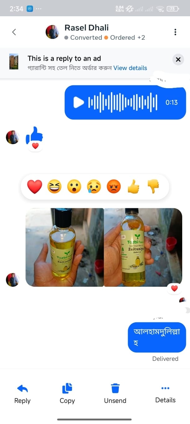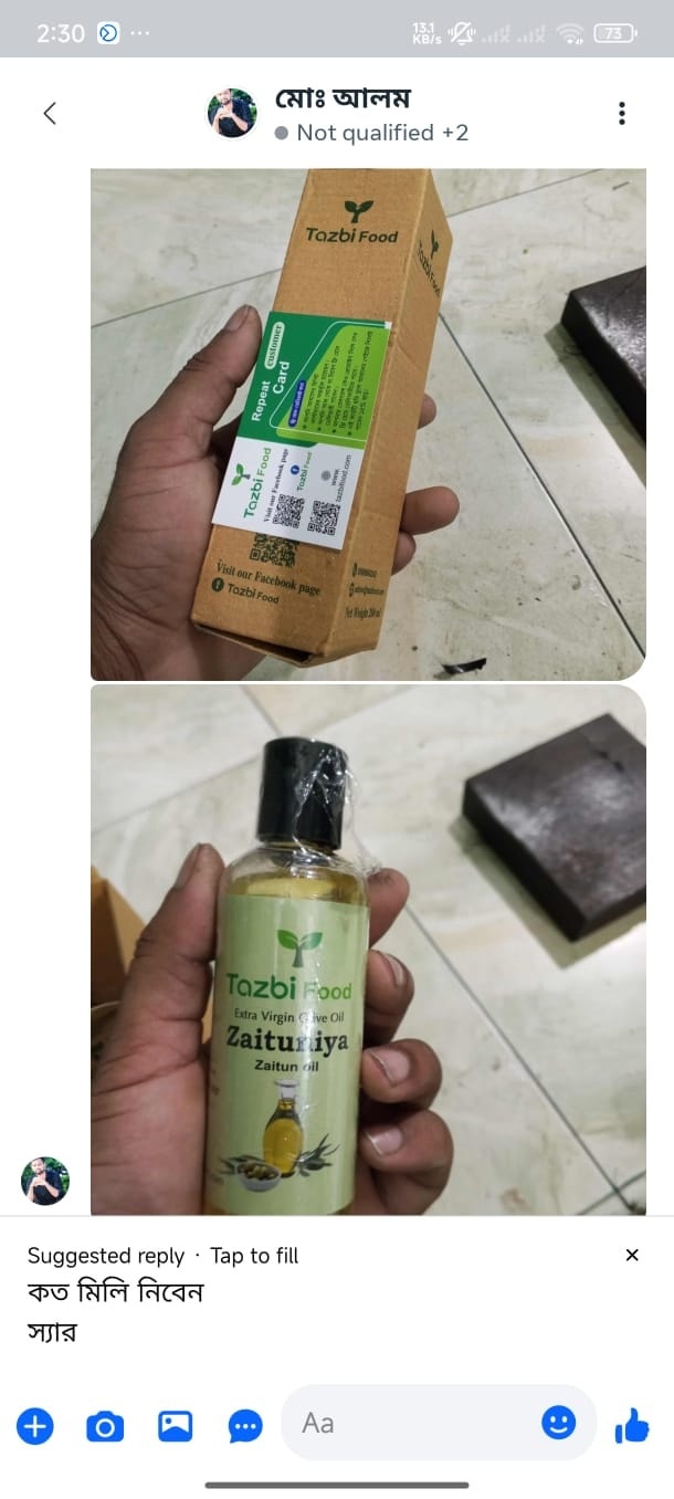 তাজবী ফুড মানেই প্রিমিয়াম কোয়ালিটি। আমরা বিশ্বাস করি, আপনার ত্বক ও চুলের যত্নে গুণগত মানের সাথে কোনো আপোষ চলে না। আমাদের কালোজিরা তেল এবং জয়তুন তেল সম্পূর্ণ প্রাকৃতিক উপায়ে প্রস্তুতকৃত, যা আপনার ত্বককে করে উজ্জ্বল এবং চুলকে করে মজবুত। এতে কোনো কৃত্রিম রং, গন্ধ বা ক্ষতিকর কেমিক্যাল ব্যবহার করা হয় না। প্রকৃতি যেভাবে উপহার দিয়েছে, ঠিক সেভাবেই আমরা তা আপনাদের হাতে তুলে দিই। আমাদের লক্ষ্য হলো, কেমিক্যাল এড়িয়ে প্রাকৃতিক উপায়ে আপনার রূপচর্চার অভ্যাস গড়ে তোলা।
